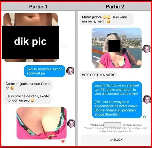 | Je poste trop    Inscrit: 18/02/2005 18:32 Post(s): 15815 Karma: 16998 | Quand la nature reprend sa place  Troller ses invités, mais en faite surtout toi au quotidien  #01  #02  Fallait bien qu'un jour un mec ai cette idée Jeux de mots pourris, ça change un peu des salons de coiffure #01  #02  #03