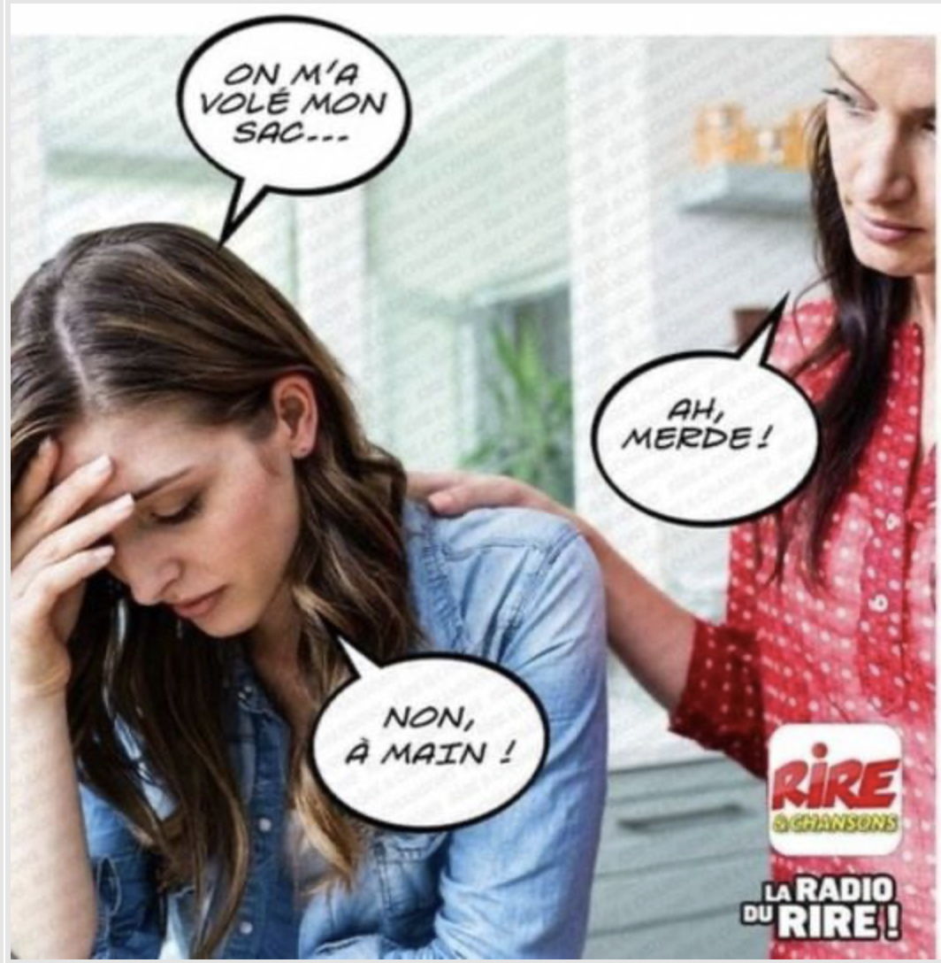 Je ne trouve pas ça drôle, vraiment pas. C'est même assez déplacé tant ce genre de chose arrive et cela pourrait blesser une personne qui en a été victime. PPF :