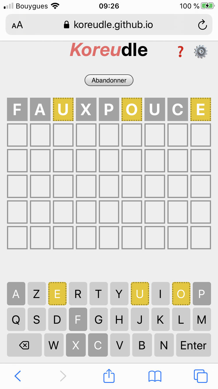 | -Flo- | Koreudle, le Wordle spécialement conçu pour les Koréusiens ! |