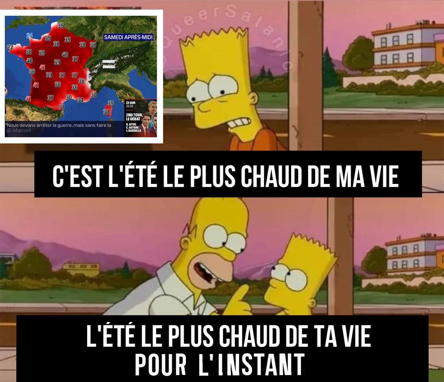 Par ce que ça viens de la : https://www.instagram.com/queersatanic/?hl=fr PPF : ![]() A gauche, la simulation qu'avait fait MétéoFrance pour 2050 et à droite celle d'aujourd'hui....