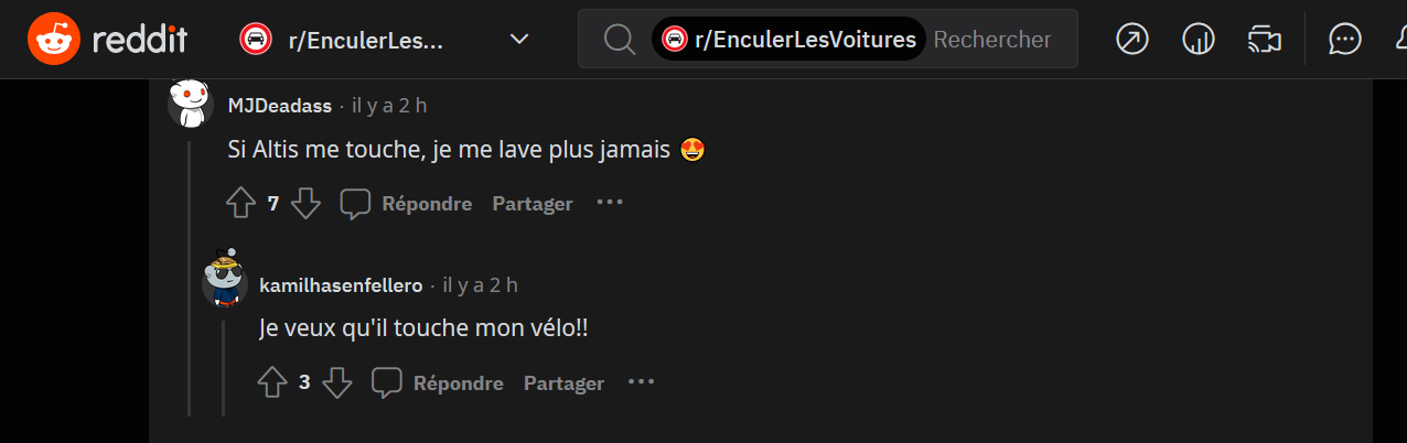 T'as des fans à fond sur le subreddit r/EnculerLesVoitures ![]()