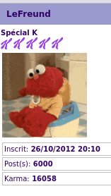 6k pour 16k de karma...tu mérites bien ton Spécial K ^^ Félicitations ! ![]()