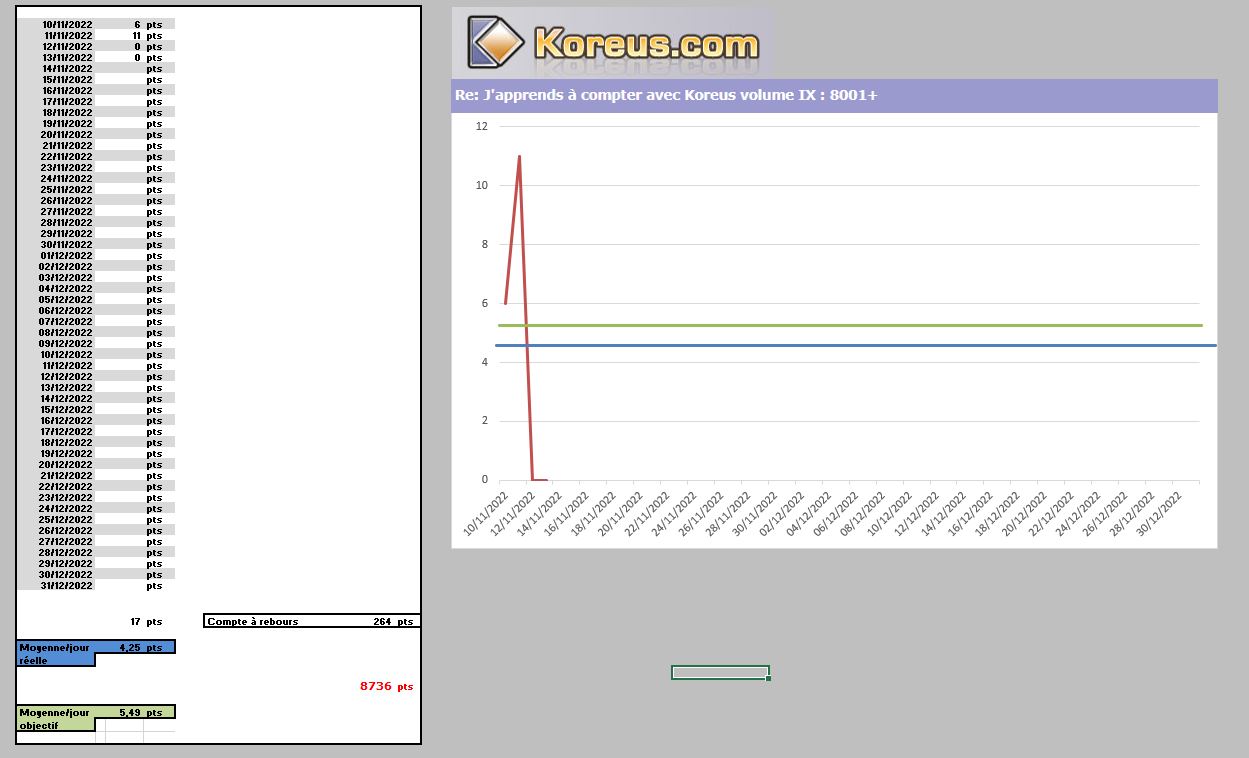 ![]() 6 par jour minimum (270 posts à mettre : 50 jours de la fin de l'année , ça fait environ 6 par jour )