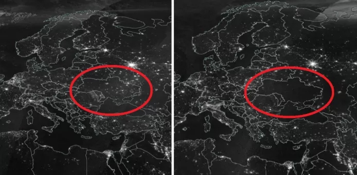 ![]() L'Ukraine le 10 janvier 2022 et le 26 novembre 2022. © NASA Worldviev (Montage 7sur7)