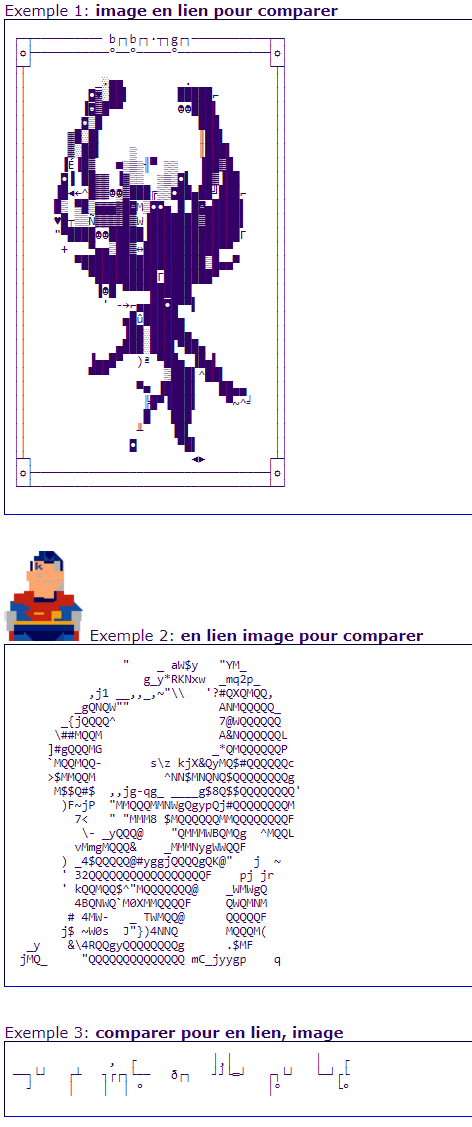 J'ai besoin de votre aide c'est hyperimportant : J'ai besoin de savoir si vous voyez ce que je fais ( parce que si ça ne fonctionne que pour moi c'est un peu nul pour ne pas dire complètement con ) Sur mon pc tout est nickel chrome c'est de la plus belle manufacture mais sur ma tablette je me suis rendu que certain caractères posent problème et du coup théoriquement seulement la seconde "image" devrait être "juste" partout. Voici trois exemple. avec une image en lien pour comparer. Merci à tous ceux qui m'accorderont 30s pour me répondre. Exemple 1: image en lien pour comparer Exemple 2: en lien image pour comparer Exemple 3: comparer pour en lien, image ------------------------------------------------EDIT_RéPONSE @Baba-Yaga Citation : Trop Bien déjà une réponse positive !! ( chez toi tout est parfait ) Ce qui fait du 200% ( @Yazguen ) sans problème, je peux donc continuer sans autres Pour la seconde image ; n'as tu donc pas fait un tour sur le topic onirisme ? Lis tu mes posts à moitié ? ![]()