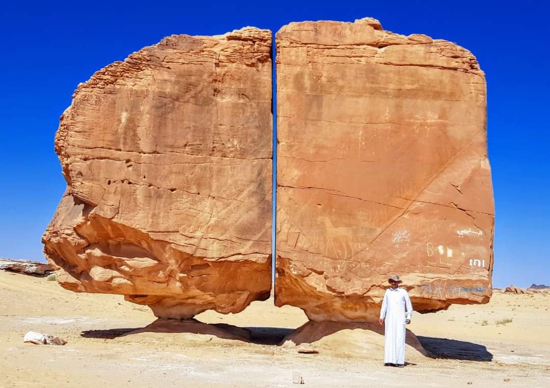 Situé à 50 kilomètres au sud de l’oasis de Tayma en Arabie Saoudite, le rocher Al Naslaa est une formation géologique vieille de 4 000 ans. Haut de 6 mètres et large de 9 mètres, le bloc gréseux se compose de deux parties verticalement séparées de quelques centimètres. Tenant en équilibre sur de petits socles, il résulte de l'érosion éolienne et de l'altération chimique liée à sa teneur en eau. Pour les spécialistes, cette faille est une diaclase soit une cassure naturelle de la pierre perpendiculaire aux limites de stratification. Néanmoins, d’autres préfèrent évoquer le résultat d’un tremblement de terre, de la foudre voire d’une intervention extraterrestre. Gâtée par des inscriptions sauvages, ses parois sont ornées de pétroglyphes présentant des hommes et des quadrupèdes.