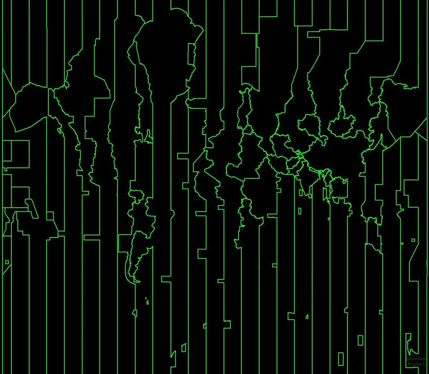 La map du monde, mais en terme de temps. Les lignes vertes sont les fuseaux horaires.