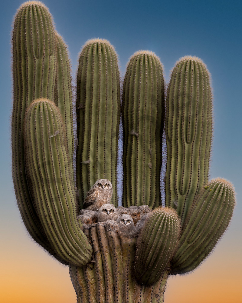 ![]() Photo de famille du grand-duc d'Amérique dans leur nid de saguaro (cactus) ![]() Menu enfant ![]()