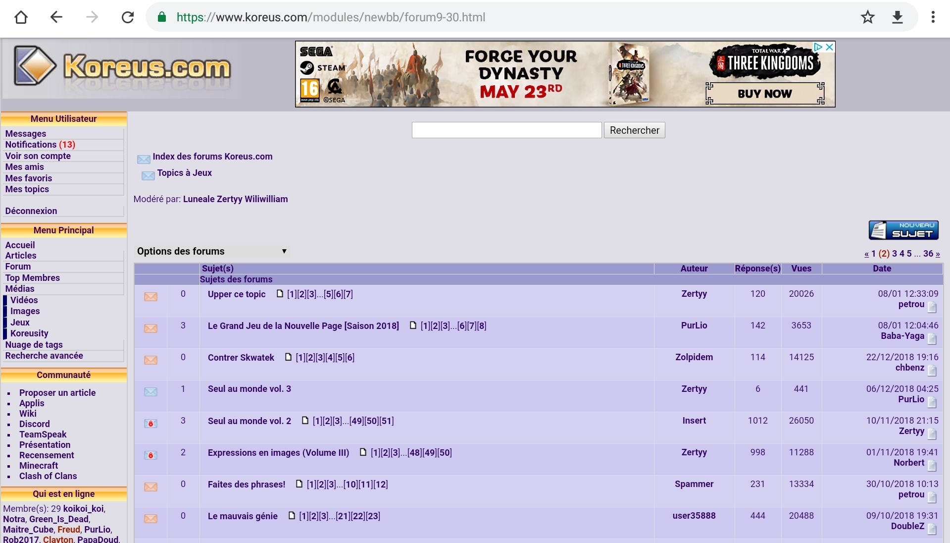 On a tellement oublié ce jeu qu'il est passé en 2ième page, en 2ième ligne Alors up !