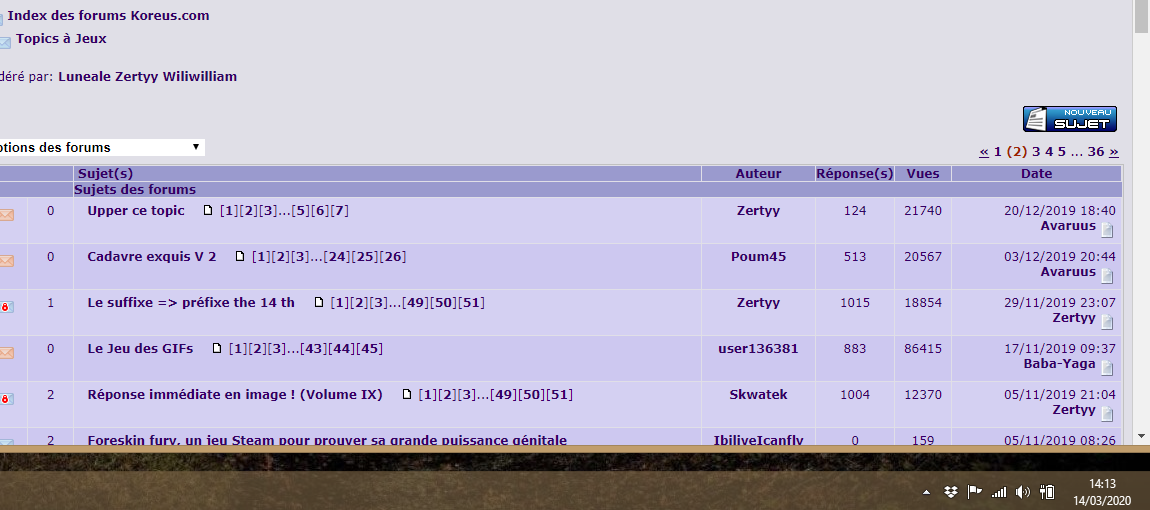 avant de pouvoir poster ici en cas de passage de celui-ci en page 2.