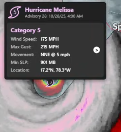 | Wiliwilliam | l'oeil de l'ouragan Melissa (catégorie 5) |