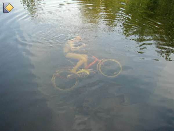 Un enfant tente un plongeon dans une piscine...