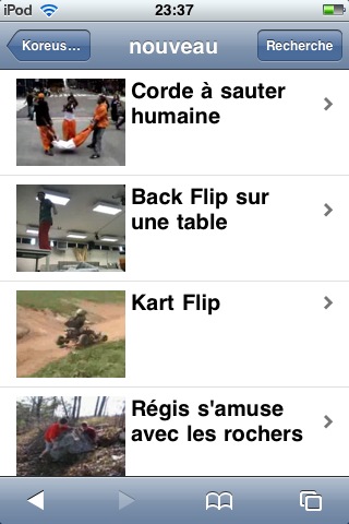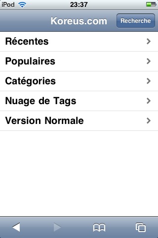 L'iPhone vous connaissez tous, cela fait presque un an que tout le monde en parle. Le gros avantage de ce téléphone est de pouvoir surfer sur Internet. Et comme son écran n'est pas aussi grand que votre LCD 24", il est préférable de faire des sites webs optimisés pour l'iPhone. Et c'est enfin chose faite avec Koreus.com. Si vous avez un iPhone ou un iPod Touch, rendez vous sur http://iphone.koreus.com ou http://i.koreus.com et voici ce que vous devriez voir :