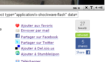 Les boutons pour partager se trouvent sous la vidéo. Ils vous faciliteront la tache. Un bouton Twitter, pour retweeter et un bouton Facebook pour partager sur son mur.