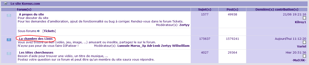 C'est "La Chambre de Liens", une partie du forum où sont postés les vidéos quand on clique sur "Proposer un article", ou alors quand les membres du forum partagent leurs trouvailles, que Koreus peut mettre en article ensuite si ça vaut le coup