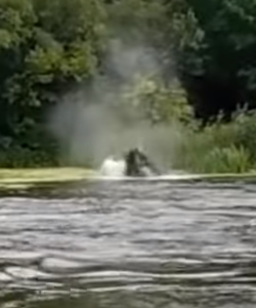 Le truc que tu vois remonter à la surface à 3:21, c'est probablement de la vase éjectée par la vitesse de pénétration dans l'eau, tout simplement.