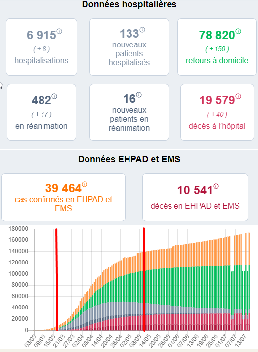 Regarde par toi même si le confinement a été efficace ou pas, j'ai mis la période de confinement entre les barres rouges. Source : www.gouvernement.fr/info-coronavirus/carte-et-donnees