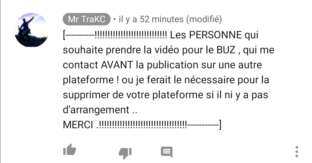 @TraKC COMMENT CA ON PREND MA VIDÉO SUR MA CHAÎNE YT SANS ME DEMANDER MON AUTORISATION ????? SOIT ON TROUVE UN ARRANGEMENT SOIT VOUS SUPPRIMEZ LA VIDÉO !