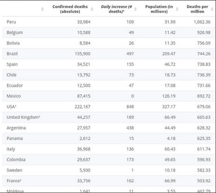 @psikopate Tout va très bien madame la marquise: le taux de mortalité est ridiculement bas et l'économie se porte comme un charme. Les gouvernements prennent des mesures sanitaires importantes pour des raisons totalement inexpliquées, ils sabotent leurs finances et leurs économies sans aucune raison valable et ils nous forcent à porter des masques pour contrôler nos esprits. C'est un complot mondial et seule la Suède n'embarque pas, même si ça doit bien les démanger de révéler le complot.