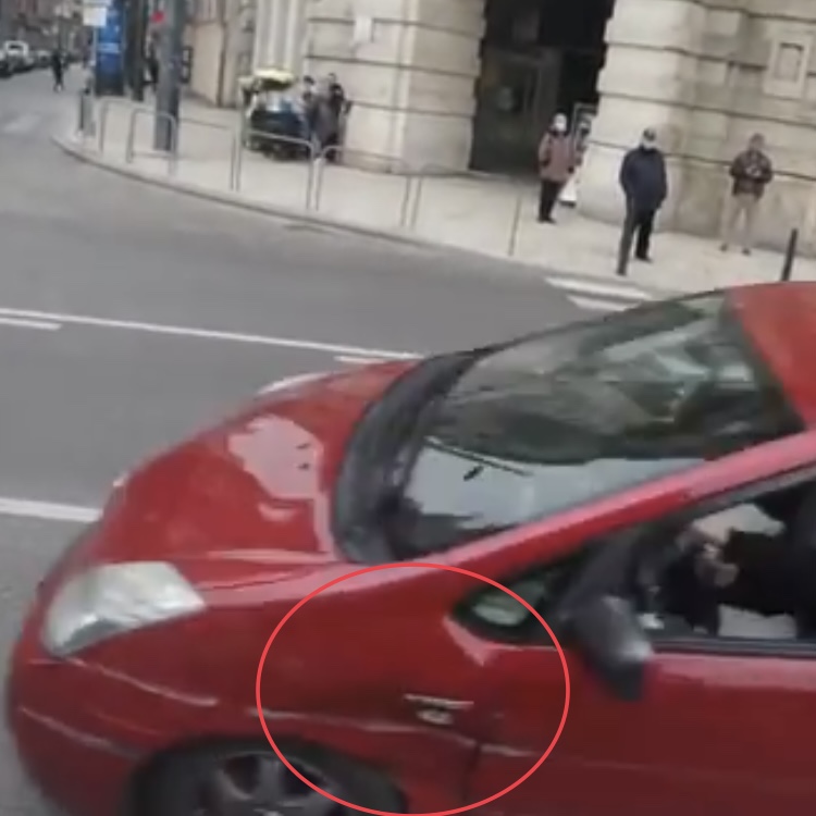 c'est bizarre parce que la voiture rouge était sur une 3eme voies qui n'existe pas, et elle dépasse les autres automobiliste a une vitesse excessive . La voiture du civile est en tort dans l'histoire. Sauf si il y a des règles différentes en hongrie