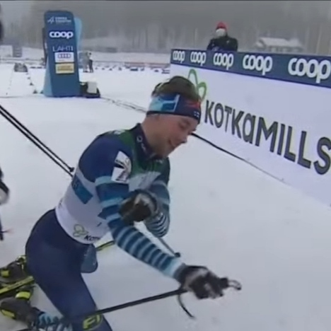 À la lutte lors du sprint final pour la 2e place du relais de Lahti avec le Finlandais Maeki (en bleu), le fondeur russe Alexander Bolshunov (en rouge) n'a pas du tout apprécié d'être tassé et a tenté de frapper son rival avec son bâton, sans réussite. Après l'arrivée, il lui a même délibérément foncé dessus. Ce geste a engendré la disqualification de son équipe (Russie 1) ainsi que l'ouverture d'une enquête par la police locale.