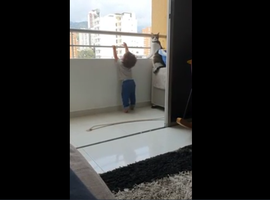 Re: Un chat protège un petit garçon sur un balcon