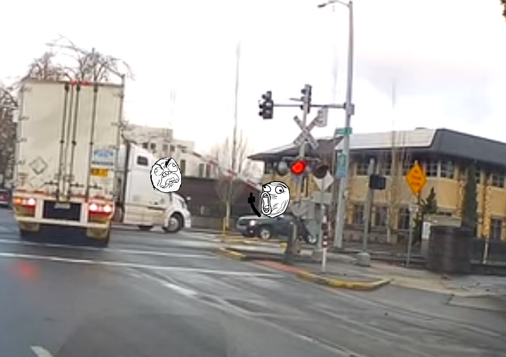 Comment peut-on être aussi con, alors que : - Le passage à niveau est en train de se fermer. - On a un gros poids-lourd - Le mec tourne à droite en plus sachant que la manoeuvre nécessite un peu de temps.