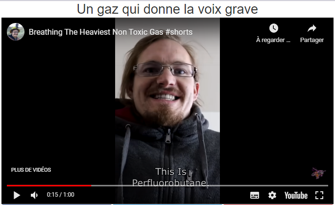 @skunky30 J'imagine bien qu'on parle pas du même gaz, mais le gaz présenté dans la vidéo comme le plus dense (de ceux qu'il inhale) est bien du perfluorobutane