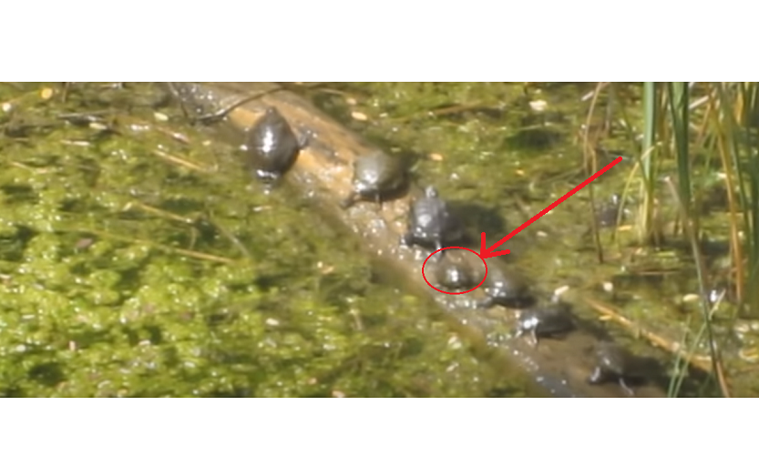 Re: Des tortues se balancent sur un rondin de bois flottant