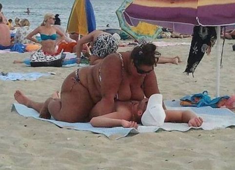 Je plains surtout la jeune femme qui tombe, car je pense qu'au quotidien, ça doit être un enfer de vivre avec cette corpulence.