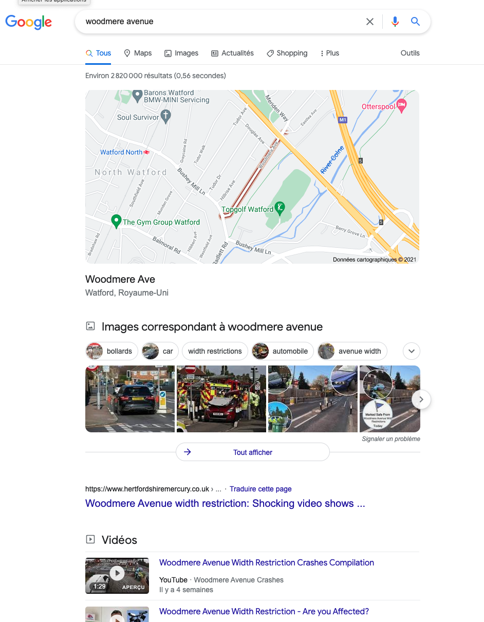 Le rétrécissement a été mis en place dans les années 80. A cet époque les 4x4 avaient la largeur des grosse citadine et SUV d'aujourd'hui. Apparemment certains demandent qu'on retire le rétrécissement mais les responsables ne veulent pas trop. Rajouter 10cm pourrait peut-être être une solution à mon avis mais cela ramènera tout le transit. https://www.mynewsmag.co.uk/woodmere-avenue-residents-demand-change-to-watfords-controversial-width-restriction/