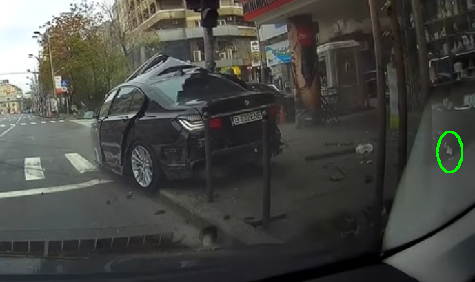 La violence de l'impact! Le feu est intact et fonctionne toujours (solides, les feux Roumains)! Impressionnant!
