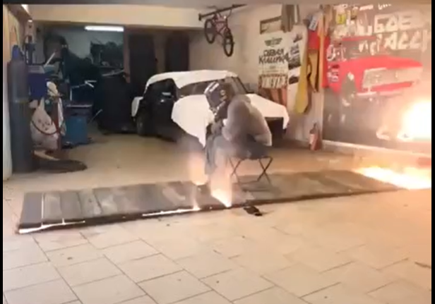 Vidéo : Un homme lâche un pétard dans une fosse de garage