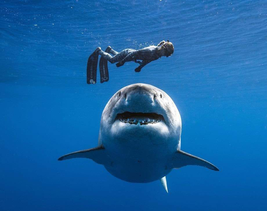 @ zorgOne Non mais c'est pas juste une lambda qui va faire du snorkeling comme pourrait le laisser croire la description. Cette fille c'est Ocean Ramsey. Elle a l'habitude de nager avec les requins et de les étudier, c'est son métier, elle se retrouve pas face au requin par hasard. Juste que pour le coup le requin est venu un peu vite à sa rencontre par curiosité (et sans doute aussi par habitude d'être nourris par les scientifique depuis le bateau) d'ailleurs elle vérifie avant de vraiment plonger justement parce qu'elle sait que ca peut arriver. Une photo d'elle nageant avec "Deep Blue" (une femelle grand blanc de presque 2,5 tonnes) ![]()
