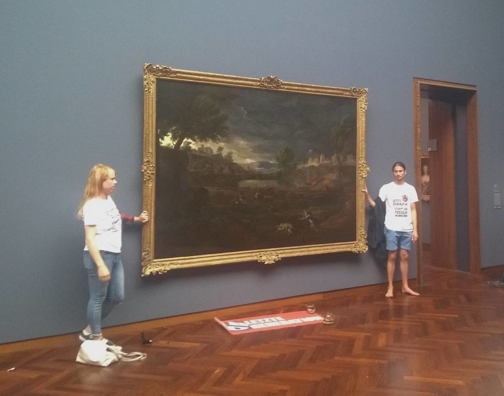 Ce qu'il faut y voir ici c'est l'acte désespéré de ces militants qui voient que absolument rien est fait pour changer notre rapport au climat et ne pas juger le forme on peut ne pas y adhérer mais il ne nous appartient pas d'émettre un jugement la dessus.