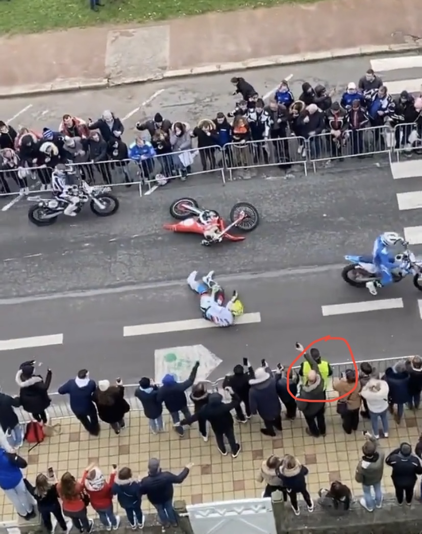 L'endroit où a eu lieu l'incident est une rue qui amène à la course sur sable, les motos étaient dans un convoi dense. Malheureusement comme le pilote concerné l'a dit, il a paniqué, s'il s'était arrêté ça aurait pu déclencher un sur-incident supplémentaire. Difficile de ré-écrire l'histoire, qui sait, un autre pilote aurait pu heurter celui au sol plus salement..