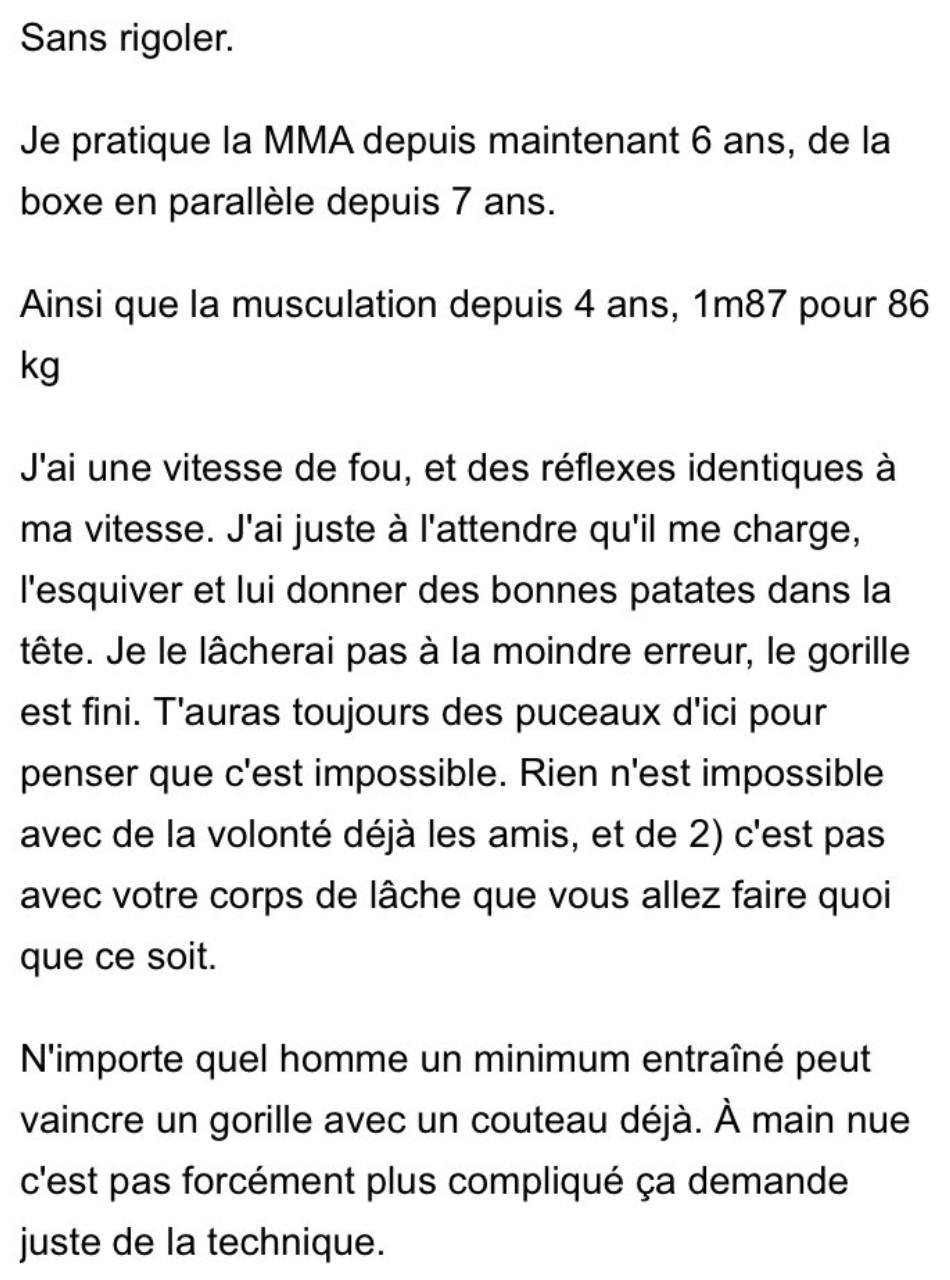 Citation : @Borny Citation : @UltimateByte La bonne femme qui recule et l'homme qui protège... Un vrai homme. Qu'on arrête de me parler d'égalité en voulant faire croire que les deux sexes sont sensés avoir des comportements identiques, on a une fois de plus la preuve que l'instinct diffère.