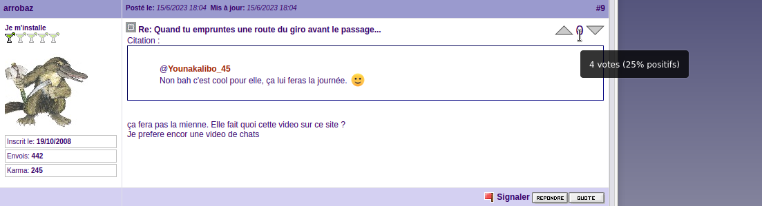Ce qui est bien ici, et surtout pour vous c'est qu'on ne peut pas passer dans le négatif sur le vote d'un message !