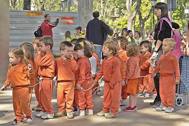 @Uatuu Je suis entièrement d'accord avec toi. Cette photo d'enfants en orange qui sont "attachés" ensemble est choquante. C'est surtout l'uniforme et les enfants qui sont attachés au poignet qui me dérange foncièrement.