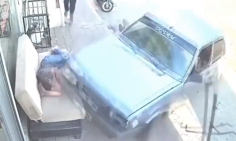 Le bruit de la voiture l'a fait émergé en sursaut juste avant l'impact, il a relevé la tête, c'est clairement ce qui lui sauve la vie.