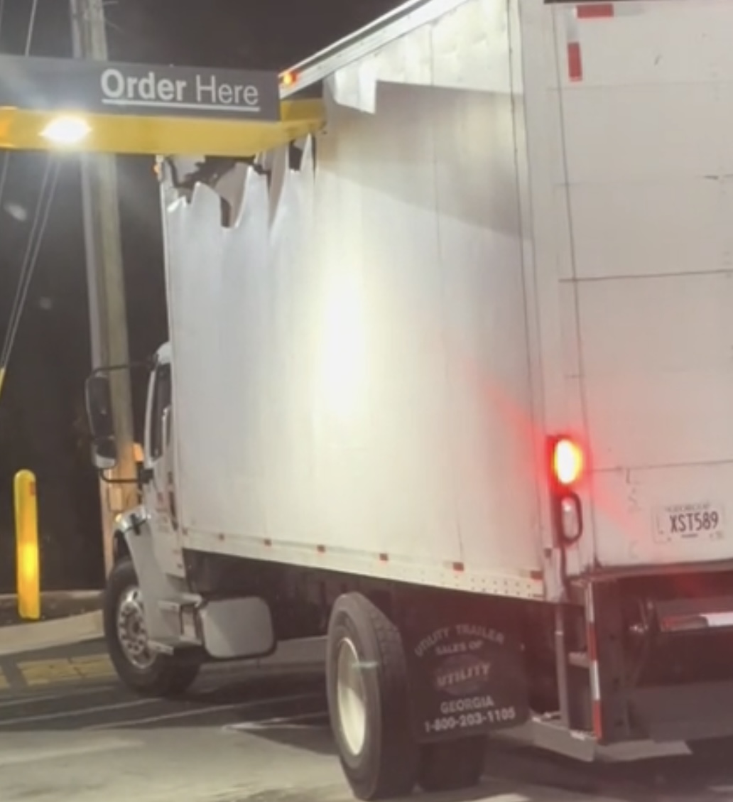 Vous n'avez rien compris. La porte arrière du camion est bloquée. Alors en cas d'urgence, toujours utiliser la méthode "ouvre boîte". D'ailleurs il va revenir car il livre les buns pour le MacDo.