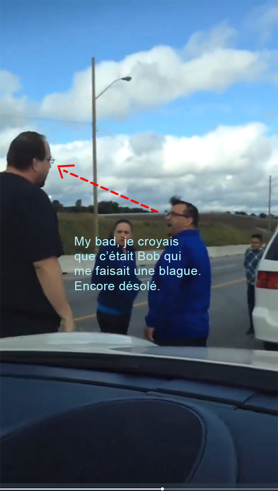 J'ai eu une expérience similaire. J'ai faillit percuté un mec en rentrant dans un rond point car le mec avec mis son clignotant à droite une sortie trop tôt et croyant qu'il s'engage j'ai démarré, mais freiné à temps. J'ai fait un geste de la main par la fenêtre sous le coup de l'énervement. Le gars sortant du rond point à la même sortie que moi, à pilé et est sortie de sa voiture et est venu vers la mienne, visiblement pas content de mon geste. Ma voiture était un twingo 1er G et je fais 1m98. Bizarrement quand je suis sortie pour discuté, le gars à changer de ton, s'est excusé pour son clignotant et est partie.