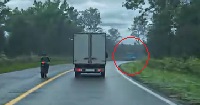 Ce qui gâche la "surprise" c'est lorsqu'il se fait doubler par un PNJ motard raide comme un piquet sur sa moto, et en regardant la vidéo une second fois image par image avant le moment fort de celle-ci, on voit que l'obstacle sort de nulle part.