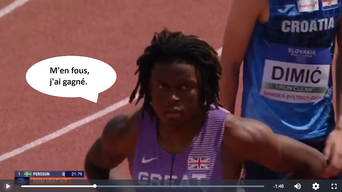 des paris pour les séries ? Ca semble précoce. Il a dit qu'il voulait s'économiser (en vue de la final) Du coup l'objectif c'est de prendre une 3ème place tranquillement. On voit qu'il est un peu surpris par le mec en rouge couloir un mais c'est trop tard