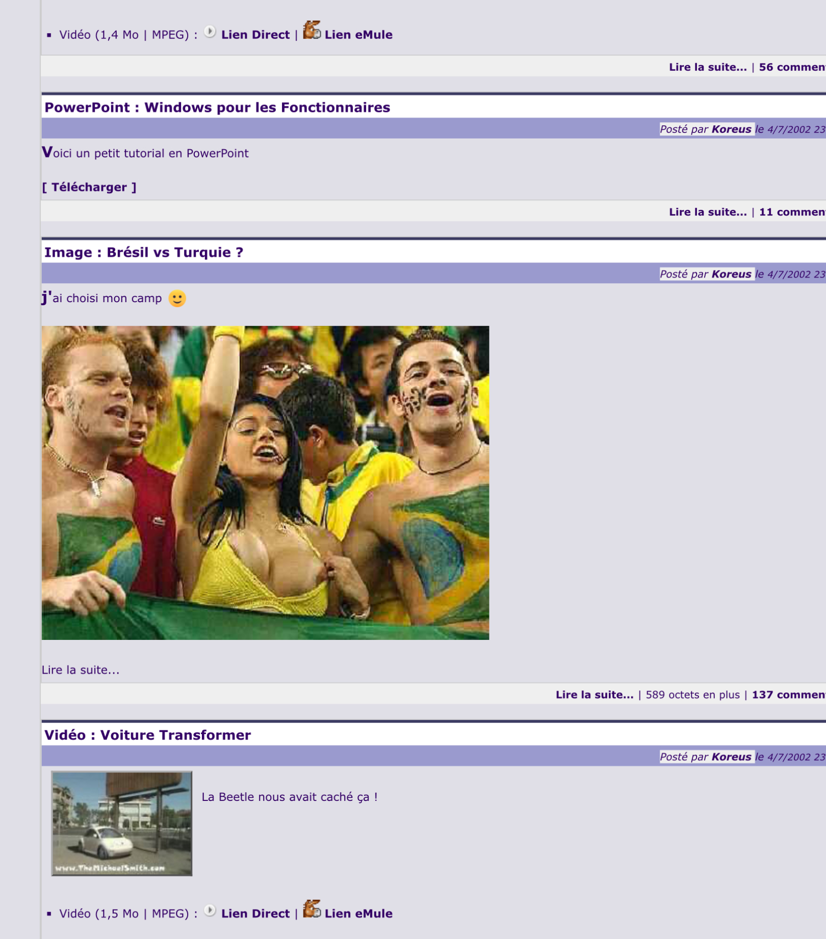 Ah! on dirait revenu le bon temps des screeners filmés au caméscope avec des sous-titres incrustés en coréen… les articles koreus proposaient des liens e-mule ![]() …et le putaclic n’existait pas en tant que concept (vous avez remarqué la paire de liens?) 🫏 @ Koreus on approche des 3000 pages quand même ![]()