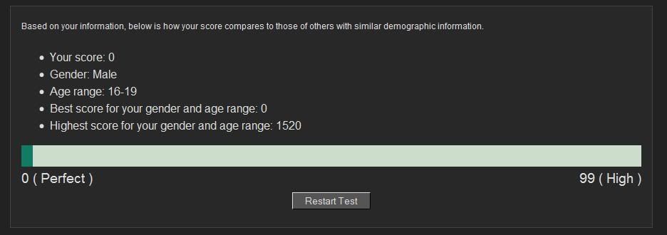 * Best score for your gender and age range: 0
