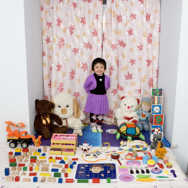 Attention: ça n'est pas représentatif. (Sinon ça serait une statistique et pas de la photographie, et ça serait précisé sur leur site officiel). Ici il s'agit d'un seul (ou deux) enfant(s) dans ces pays qui partage ses jouets préférés avec nous.