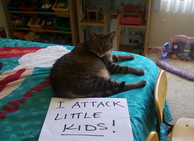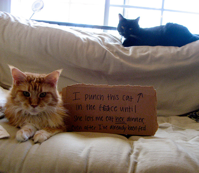 Re: Des maitres collent une pancarte de la honte à leur chat
