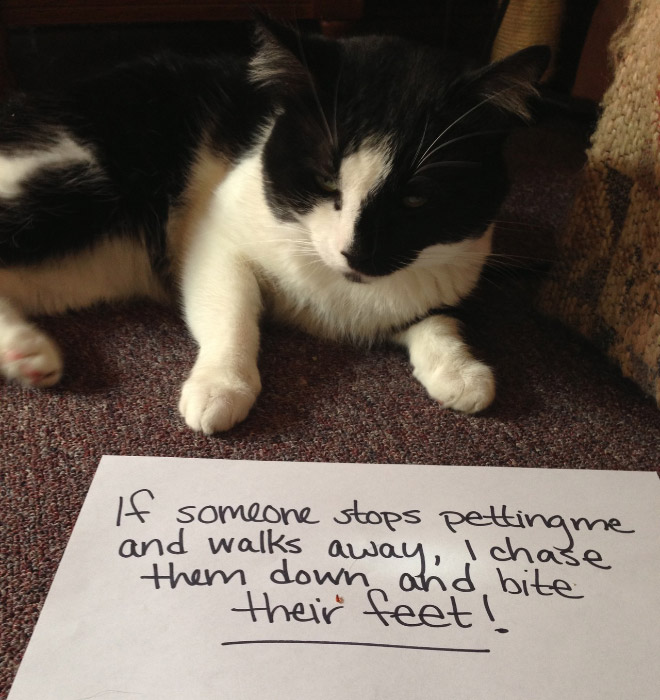 Bonjour à tous, pour information, suite à la publication des photos sur les chats et leurs pancartes de la honte, nous avons créé une page Facebook en Français et celle-ci commence petit à petit à prendre, n'hésitez pas à venir y faire un tour et nous envoyer des photos ! Merci ! http://www.facebook.com/pancartedelahontepourchats