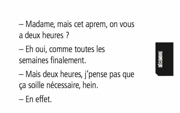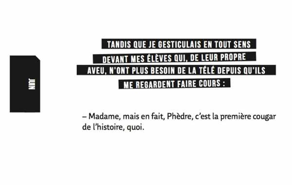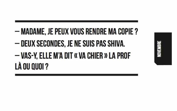 Tous les jours, elle a le droit à quelques phrases perles de ses élèves (classes de seconde, première et BTS).